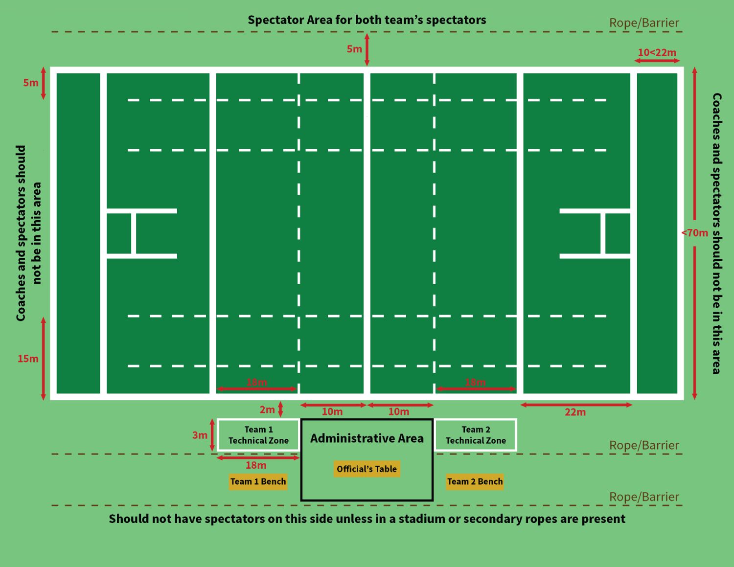 Ragbi sahasД±nД±n boyutlarД±; uzunluДџu 100 metreyi geГ§meyecek, geniЕџliДџi 70 metreyi geГ§meyecek Еџekilde olmalД±dД±r. SayД± (TRY) yapД±ldД±ktan sonra 2 sayД±lД±k conversion atД±ЕџД± da rugby kale direkleri arasД±ndan yapД±lД±r.