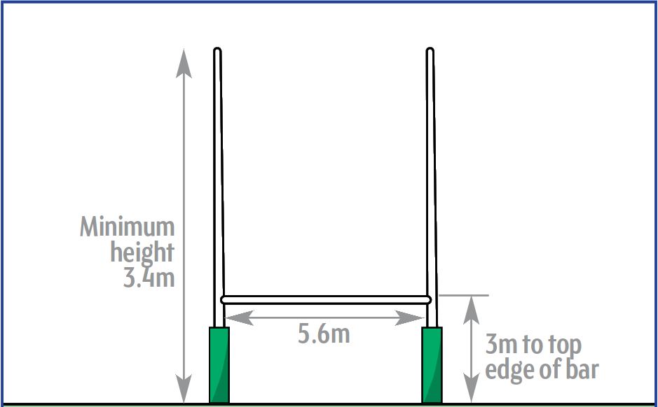 Ragbi’de kale boyutları 5.6 metre genişliğinde, 3 metre yüksekliğindededir. Kalenin yan taraflarında bulunan ve H şeklini oluşturan direkler ise 3.4 metreden büyük olmalıdır. Bu direklerin arasından ve orta direğin üstünden geçen atışlar sayı olarak kabul edilir.