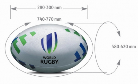 Ragbi topunun büyüklüğü ve şekli 1890’ların sonuna kadar tam anlamıyla belli değildi. 1892’de ragbi topunun boyutları ; uzunlamasına çevresi 75 cm civarı ,enlemesine çevresi 60cm civarında bir boyutta tutulmaktaydı. Ortalama 2,2km ağırlığındadır.